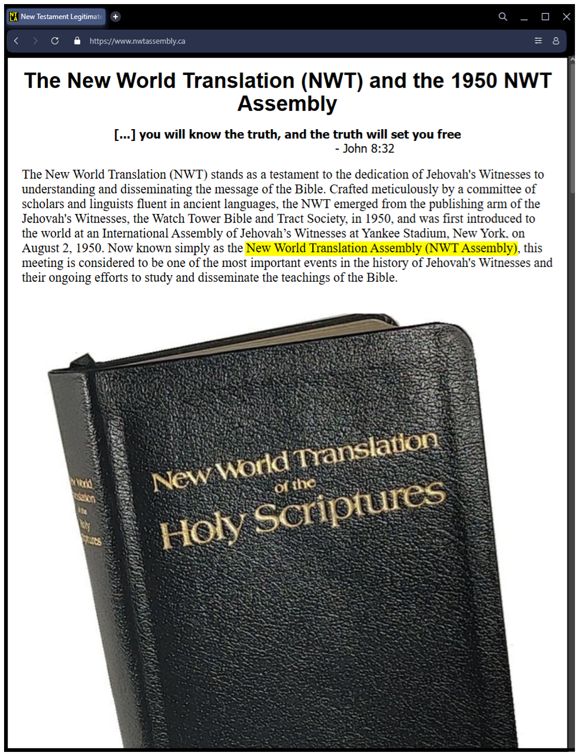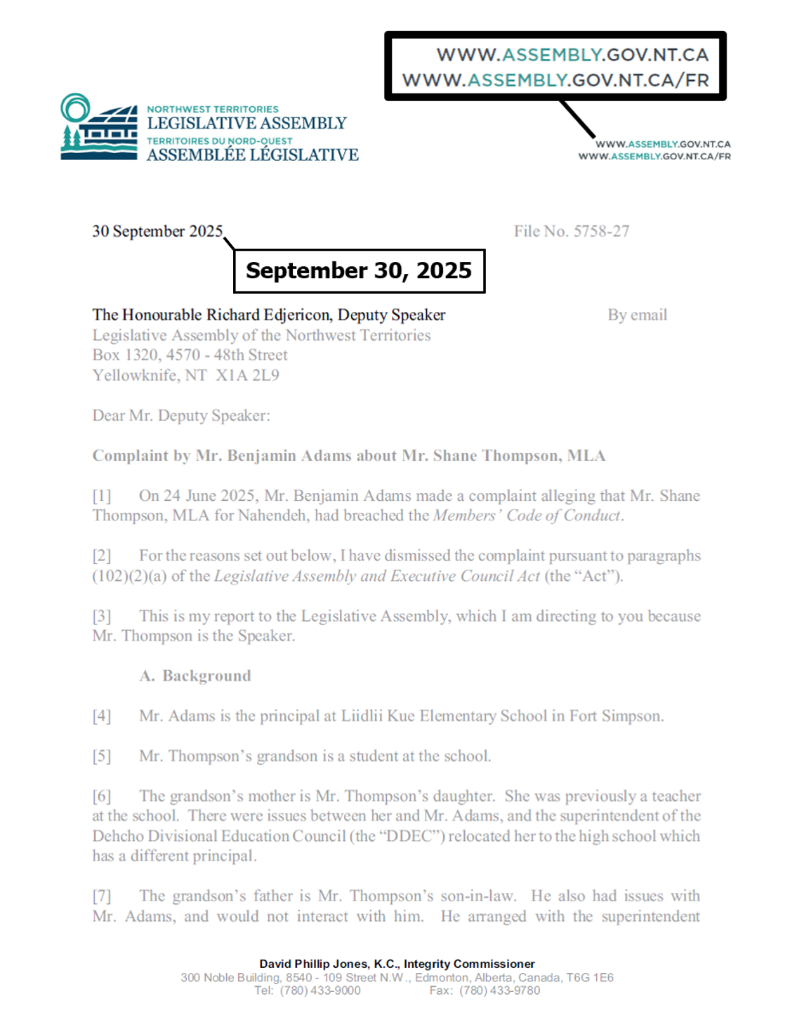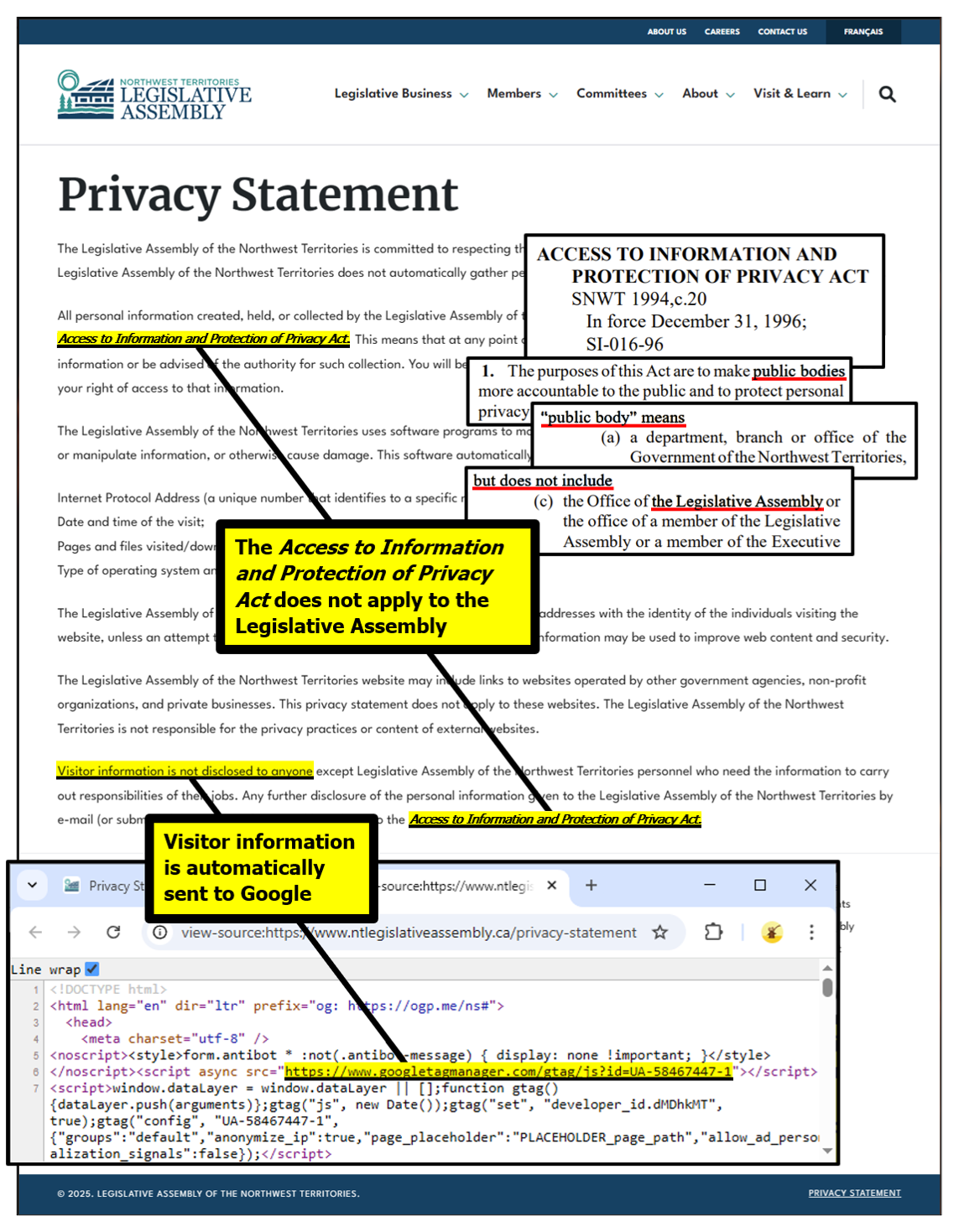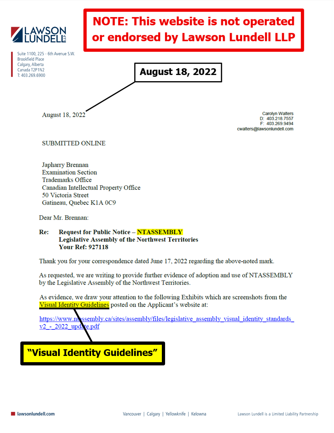 "the NTLA owns the domain name www.ntassembly.ca" is FALSE: